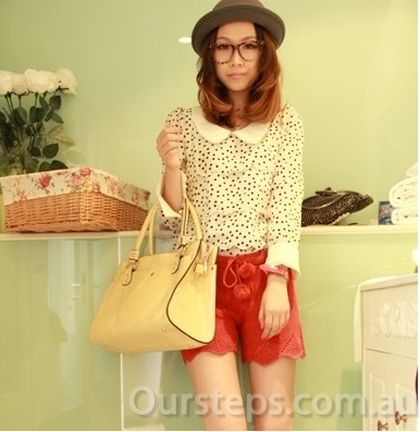 10. 日系女昕薇杂志款vivi1月蕾丝娃娃领点点雪纺衫, 今年新款哦,白色现货一件,可爱爆~均码 $28
