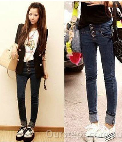 14。新款单排扣高腰修身显瘦设计 高腰铅笔牛仔裤, 超级好搭的紧身打底裤哦,超级显瘦。均码~ $30